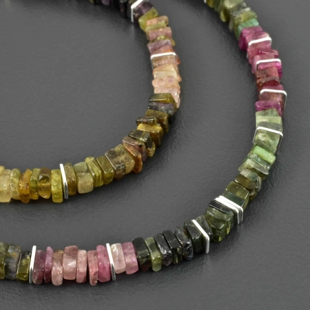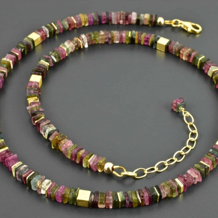 • Zarte Turmalin-Würfel Kette, bunt, 925er Silber