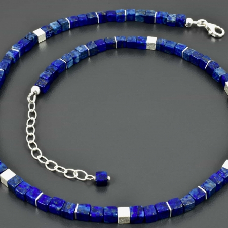 • Lapislazuli-Würfel-Collier mit 925er Silber