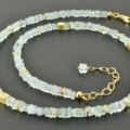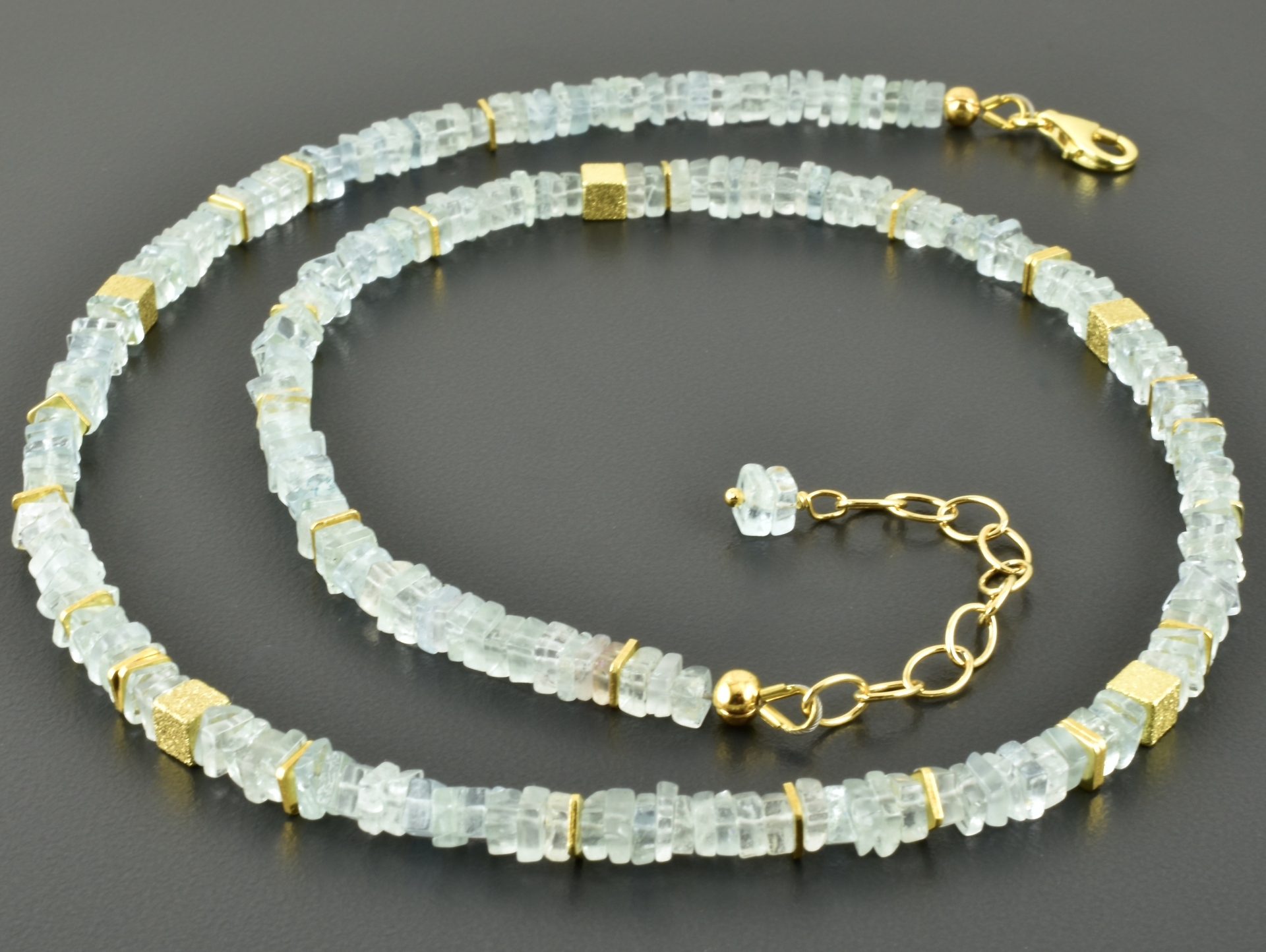Anfertigung Aquamarinkette mit viereckigen Scheiben und vergoldetem 925er Silber.