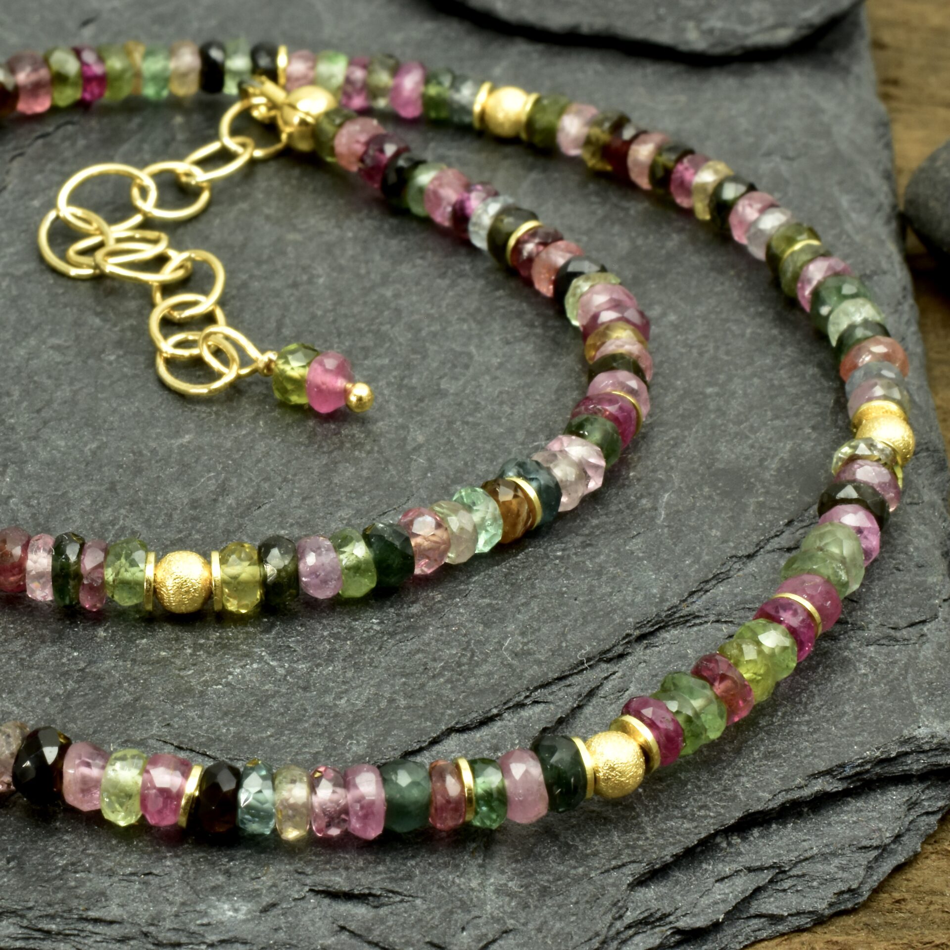 Buntes Turmalincollier mit vergoldetem Silber