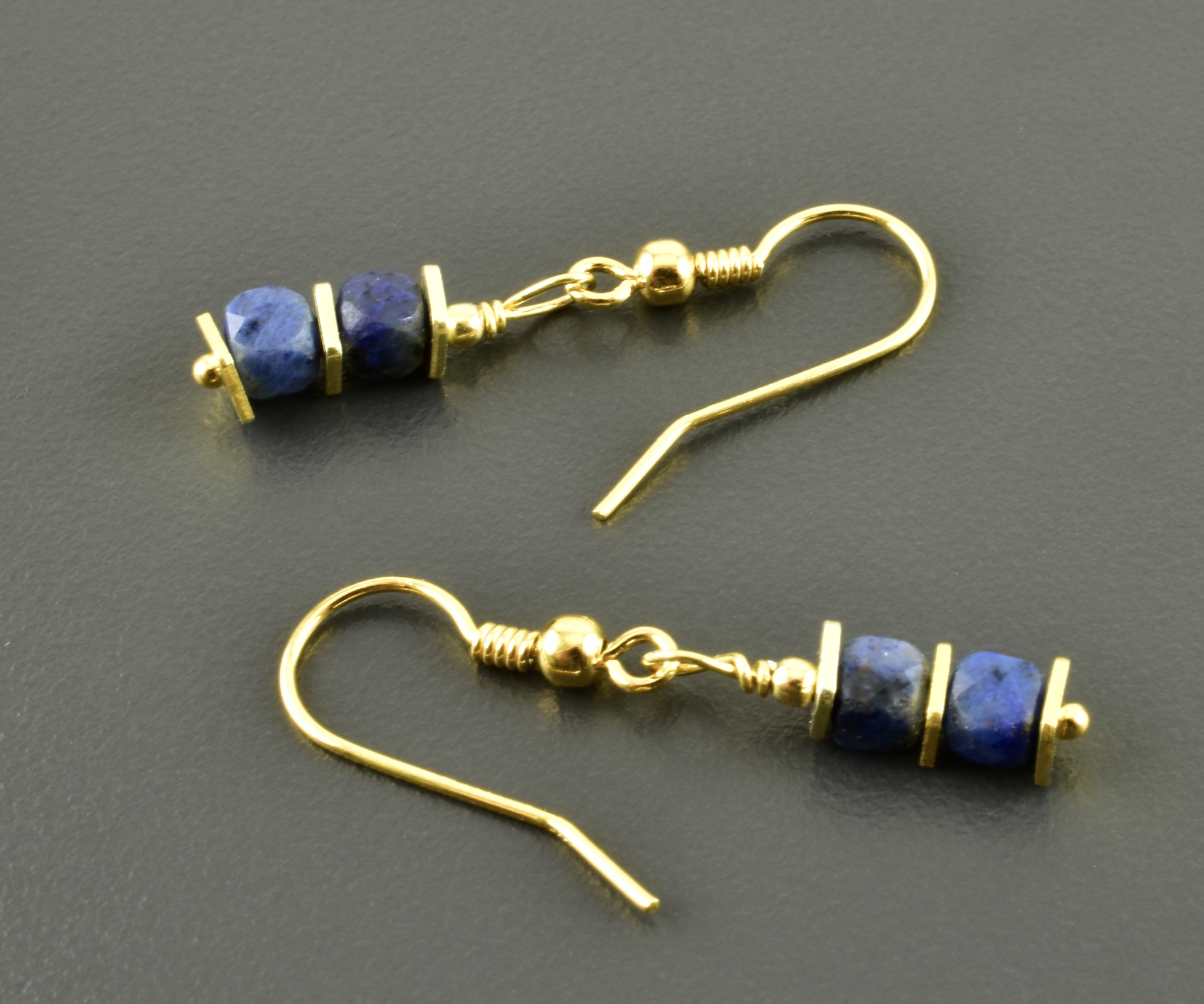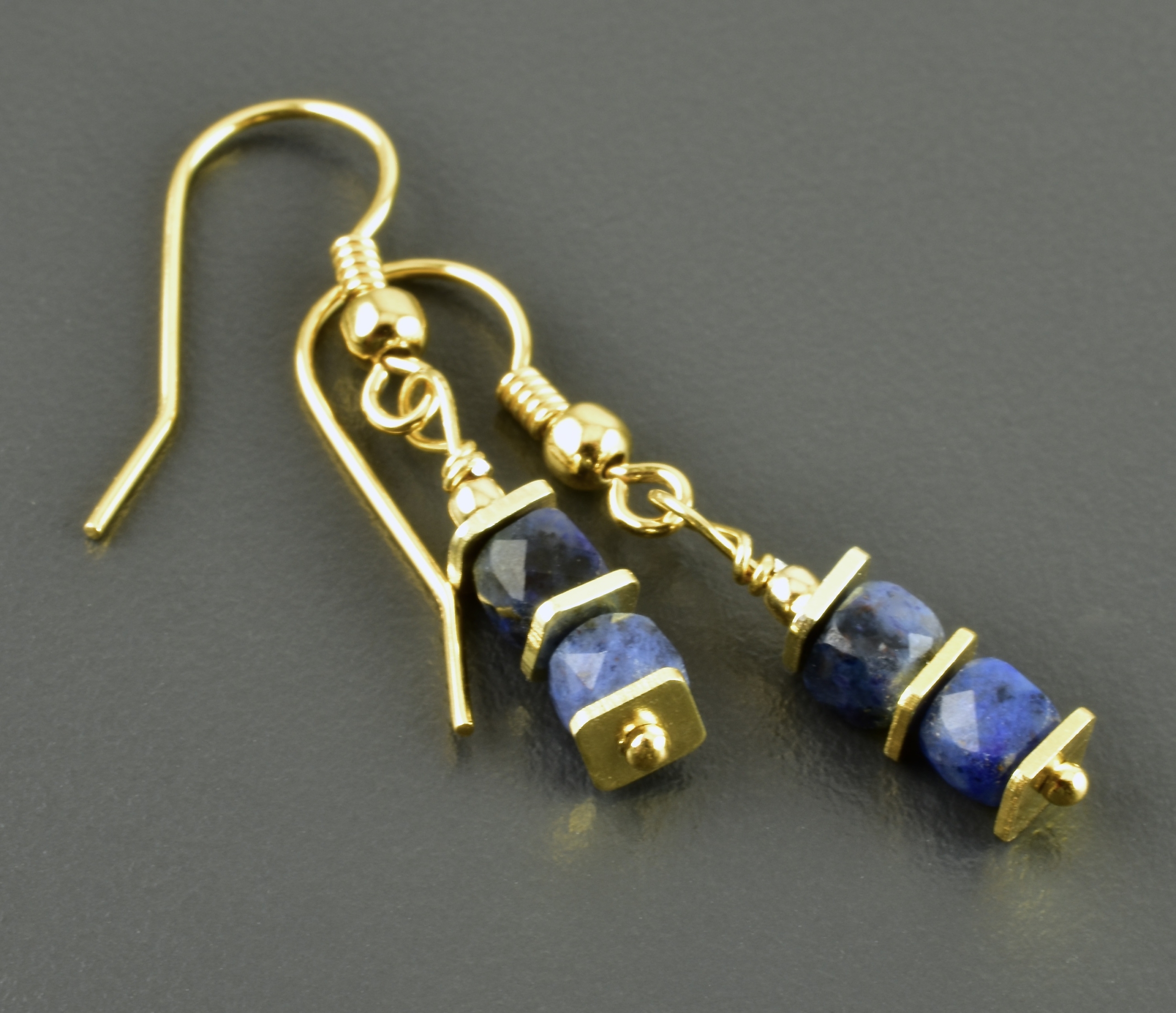 Dumortierit Würfelohrringe, vergoldetes 925er Silber