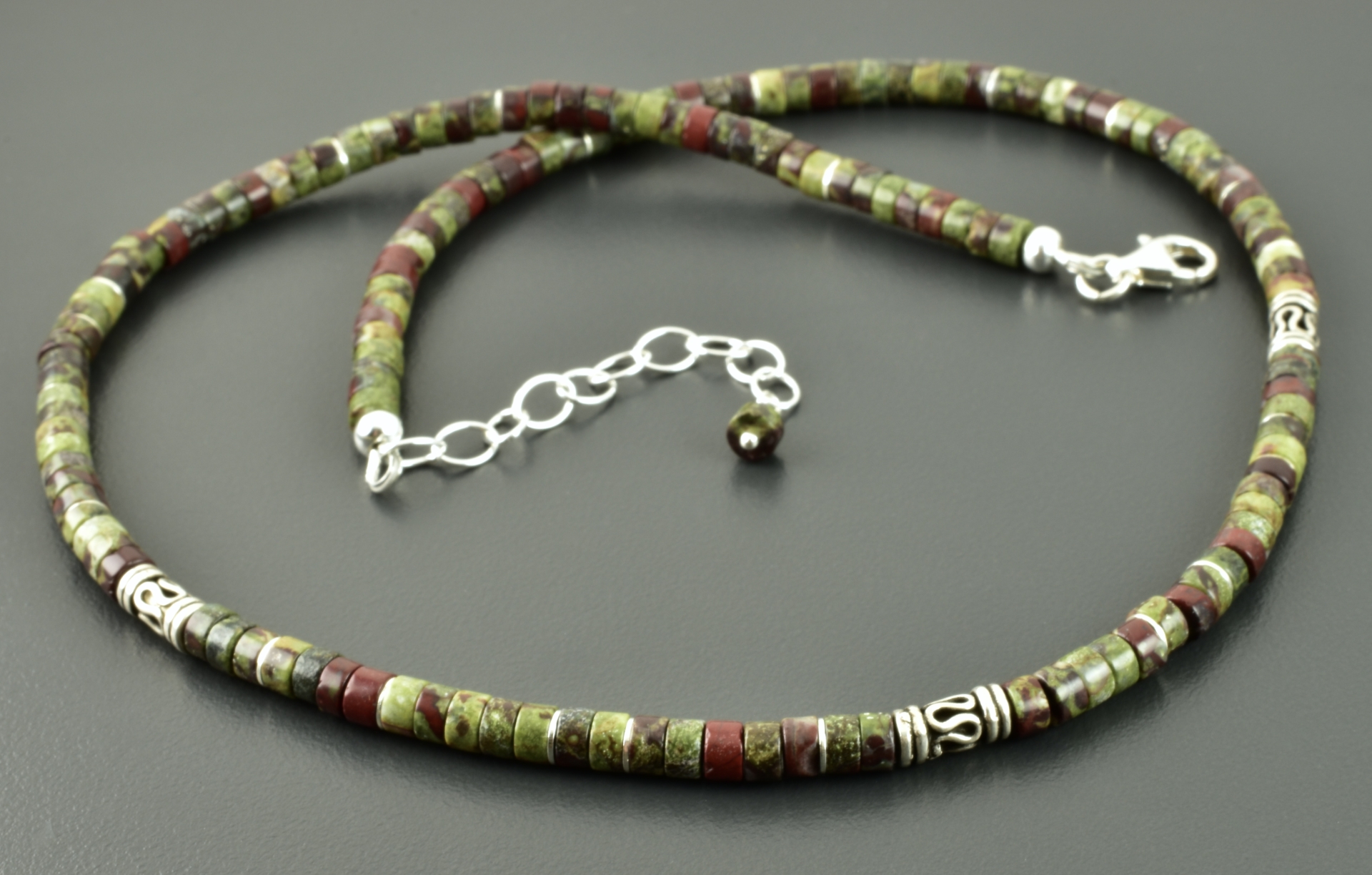 Wunderschönes Collier aus 4 mm Jaspis-Scheiben und 925er Silber.