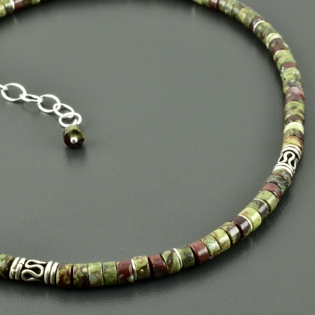 Ich benutze für meine Ketten einen hochwertigen, nylonummantelten Juwelierdraht, der aus 49 kleinen Stahldrähten besteht, dadurch ist er besonders flexibel, reißfest und anschmiegsam.