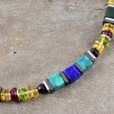 Wunderschöne Würfel-Kette mit blau-grünen Edelsteinen.