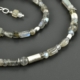Ich benutze für meine Ketten einen hochwertigen, nylonummantelten Juwelierdraht, der aus 49 kleinen Stahldrähten besteht, dadurch ist er besonders flexibel, reißfest und anschmiegsam.