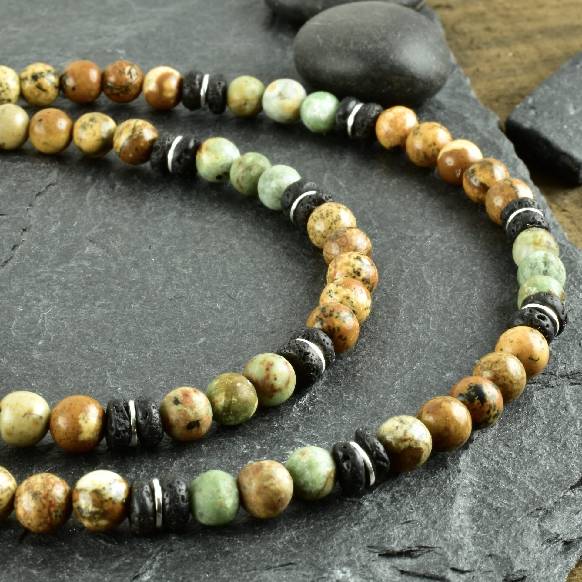 Männerkette mit Lava, Jaspis, Opal und 925er Silber