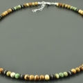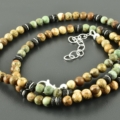 Halskette mit Jaspis, Lava, grünem Opal und 925er Silber