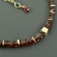 Für diese Ohrringe habe ich matt-schwarze Granatröhrchen mit dunkerotem Granat und blau/grünem Chrysokoll kombiniert. Die vergoldeten ( 925er Silber) Scheiben runden das Design ab.