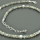 Ich benutze für meine Ketten einen hochwertigen, nylonummantelten Juwelierdraht, der aus 49 kleinen Stahldrähten besteht, dadurch ist er besonders flexibel, reißfest und anschmiegsam.