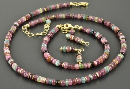 Zierliche Kette aus multicolor Spinell mit passendem Armband und Einhängern.