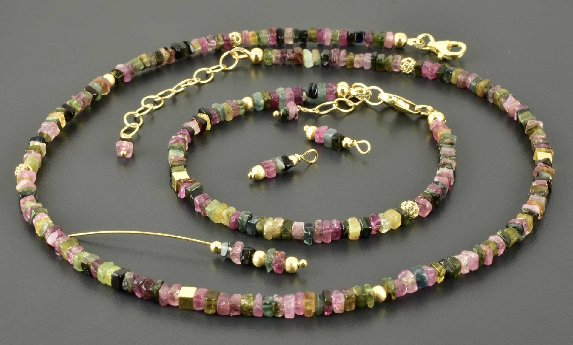 Anfertigung Turmalinkette ( 40 cm ) mit passendem Armband ( 18,5 cm ) und 3 Einhängern.