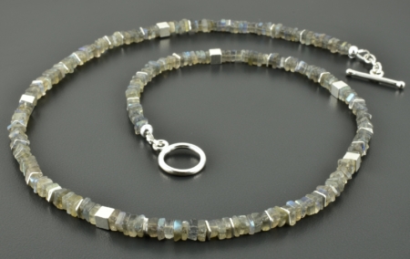 Stilvolle Kette mit viereckigen, 4 mm großen Labradoritscheiben, die von 925er Silberscheiben –