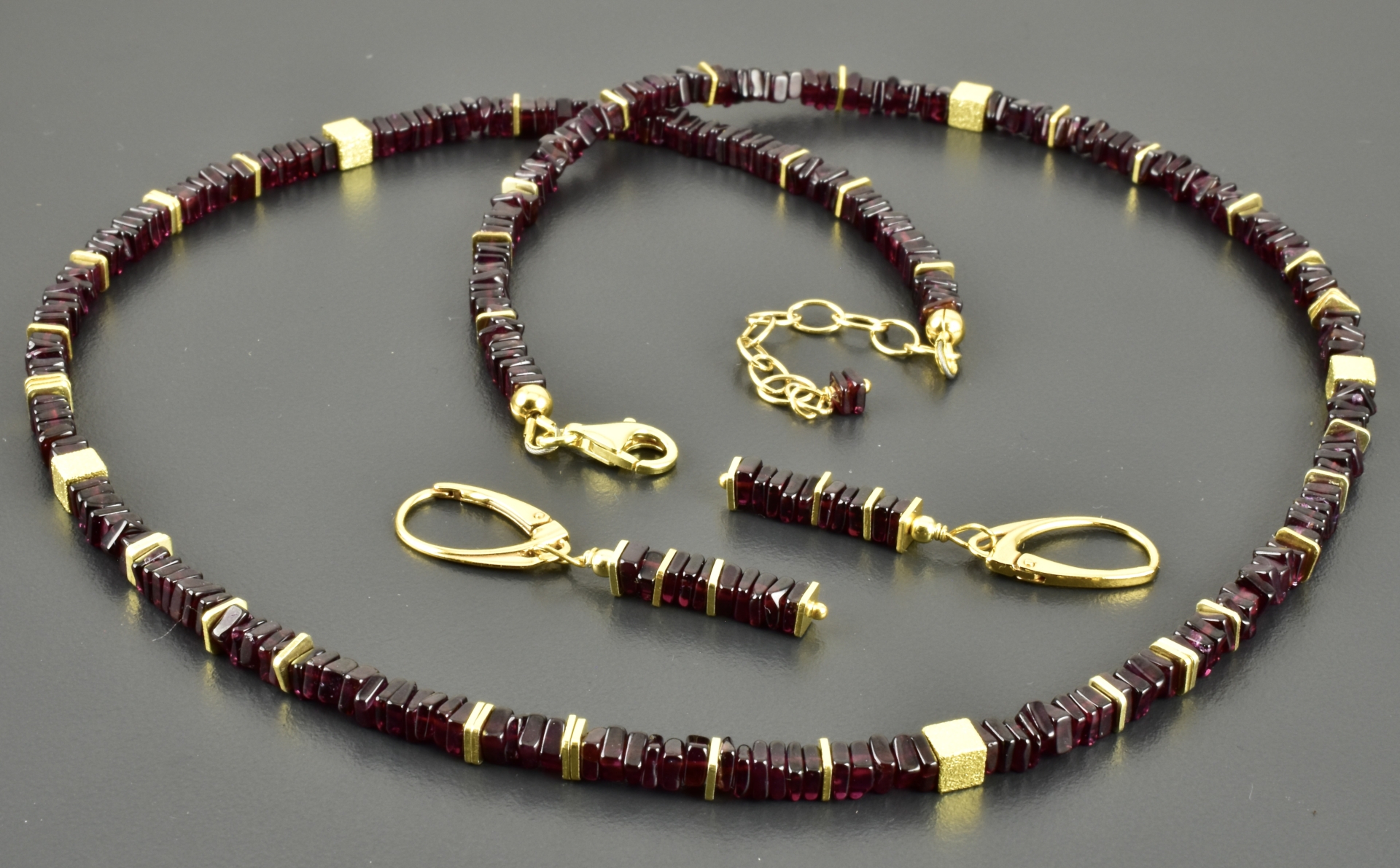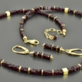 Anfertigung Edelsteinkette mit Granatscheiben und vergoldetem 925er Silber, mit passenden Ohrringe, 4,2 cm lang.