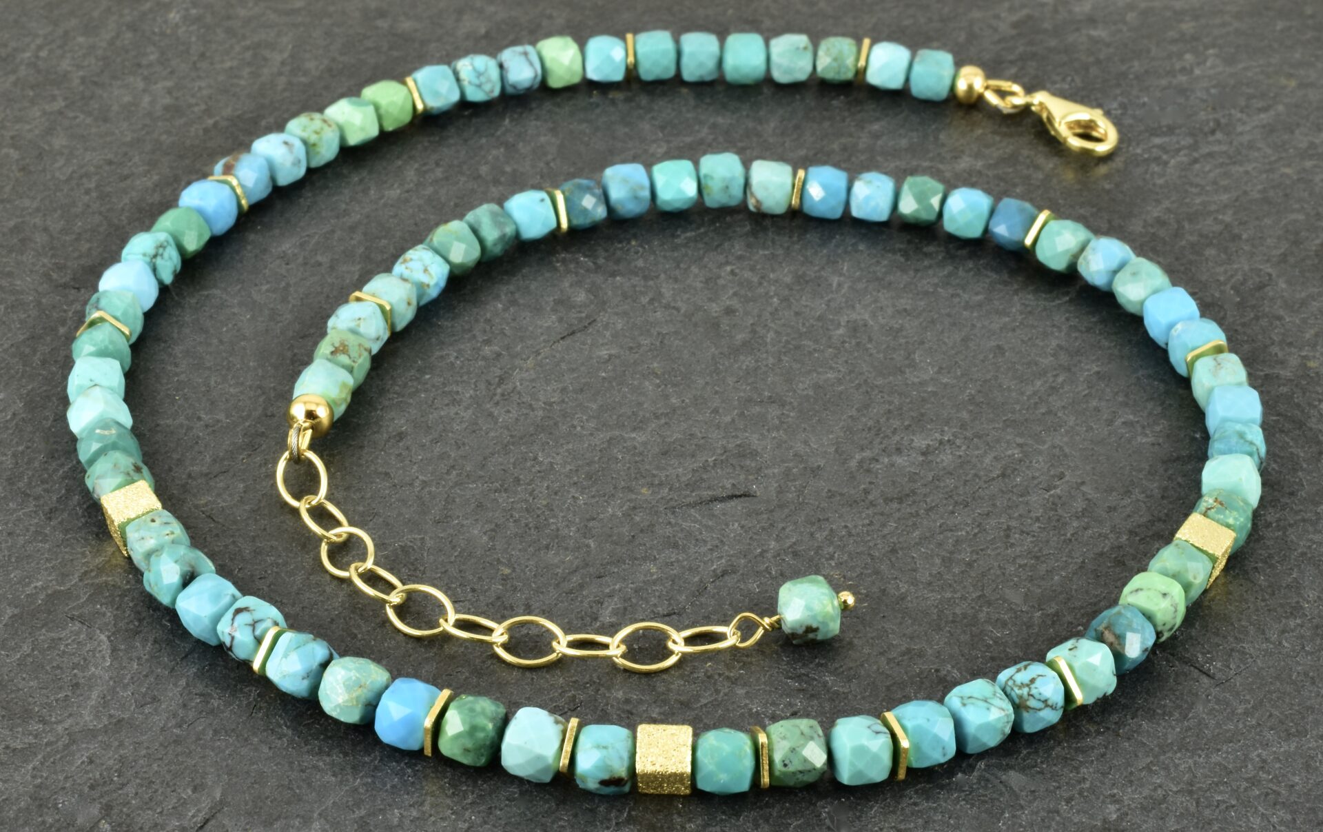 Türkis-Würfel-Kette mit vergoldetem 925er Silber